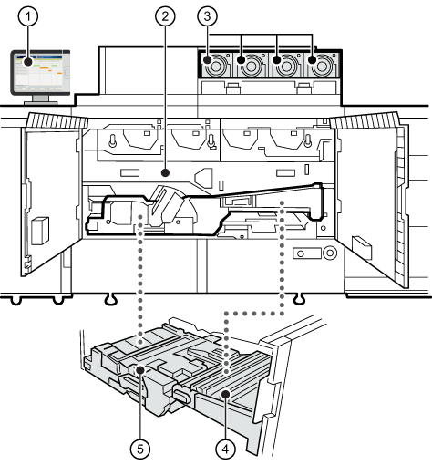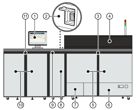 Vue externe du module d’impression (avant)|