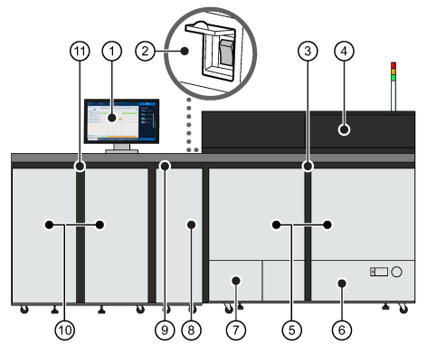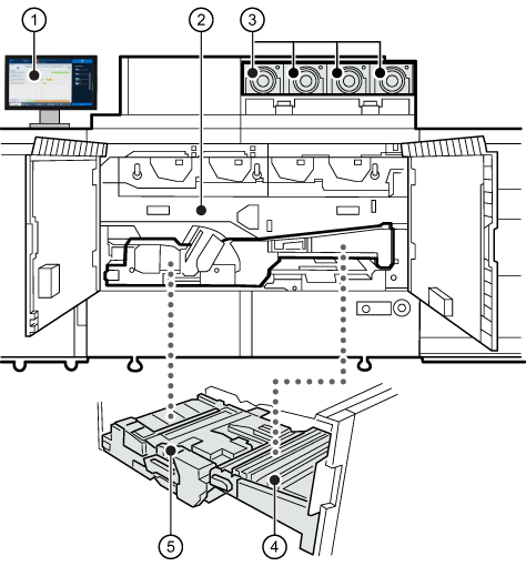 Control panel to operate the print system and perform daily tasks and maintenance |