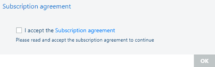 [관리자] 역할을 보유한 첫 번째 사용자는 응용 프로그램에 액세스하기 전에 구독 계약에 동의해야 합니다.일반 사용자는 영향을 받지 않습니다.