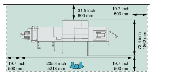 Configuration (minimum) standardEn cas de fixation des dispositifs Convoyeur pour massicot-B, Massicot-G, Module de Finition AF, Module de Pli en K, Module de réception grande capacité-J (2), Module dos carré collé-F, Perfo Pro Multi-Fonction-C, Unité d'insertion de Document-R, Inspection unit-B, Sensing unit-B, Magasin Papier de POD-E et Secondary POD Deck-E :