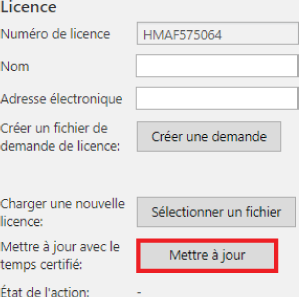 2. Accédez à la section [Licence] et cliquez sur [Mettre à jour].