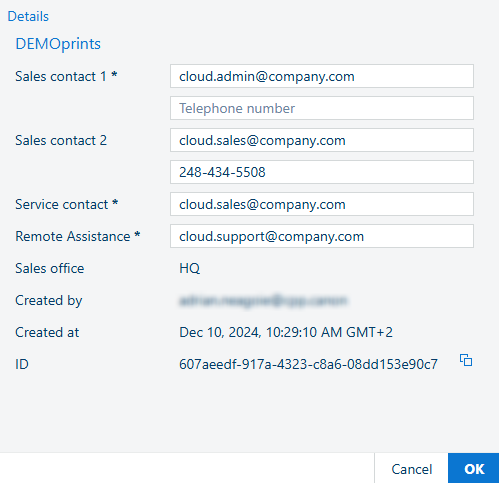 可以在此面板中管理当前选定租户的详细信息。可以更改添加租户时定义的一些字段。