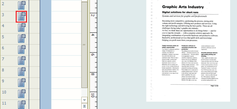 In the [Structure] view, the pages of the file now display a different icon, to indicate that these pages contain rasterised images.
