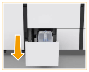 Sortez le magasin qui contient le conteneur de rebut de toner jusqu'à la buttée. |