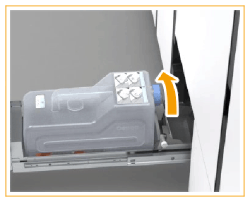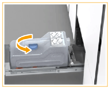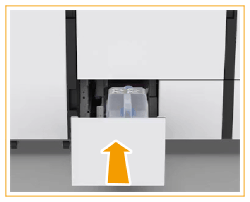 Vous pouvez remplacer la cassette de récupération de toner ultérieurement, mais garder à l’esprit que le travail actif ou que l’un des travaux suivants rencontrera une erreur de saturation de la cassette de récupération de toner. La cassette de récupération de toner se trouve dans le module d’impression.