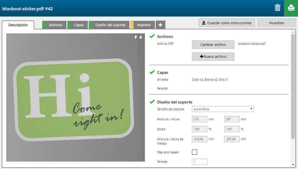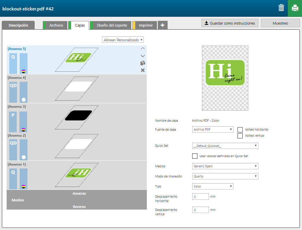 La fórmula 'Block out sticker' consta de 5 capas impresas en un lado del material.
