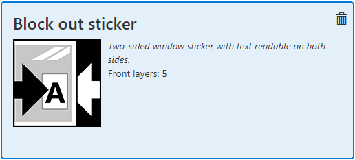 Die Rezeptur [Blockout-Aufkleber] enthält 5 Layer, die auf eine Seite des Materials gedruckt werden.