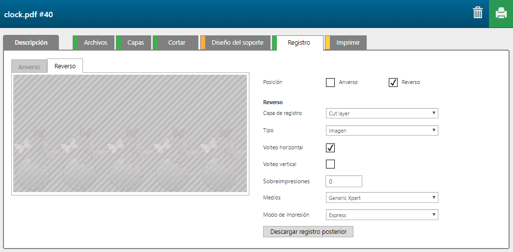 Una capa con la información de registro empleada para disponer correctamente los objetos al imprimir.