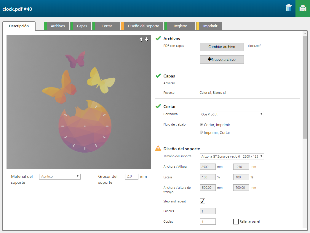 La fórmula 'Print on objects' consta de 2 capas impresas en el reverso del material.