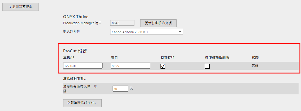选中:[自动打印] 。来自 ProCut 的所有作业将自动打印。
