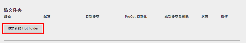 在 Hot 文件夹区段中单击 [添加新的 Hot Folder]
