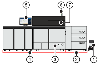 The print system can be given different configurations to match various print environments. The print system has basic hardware parts extended with optionals. In the table below, you can find descriptions of the main parts.