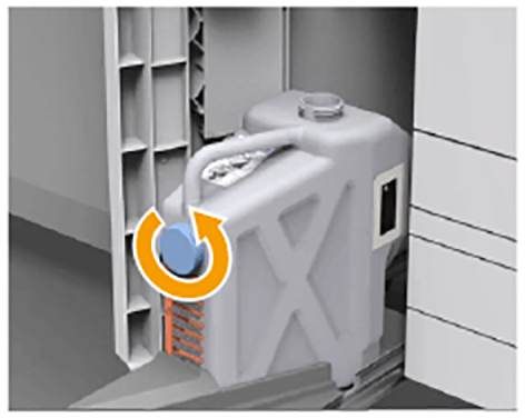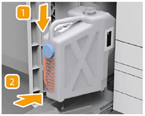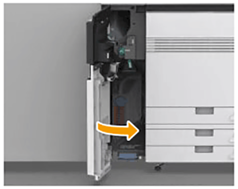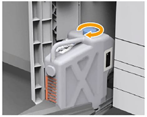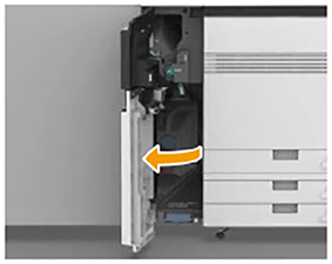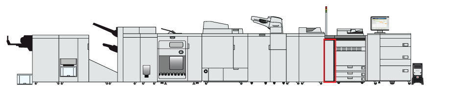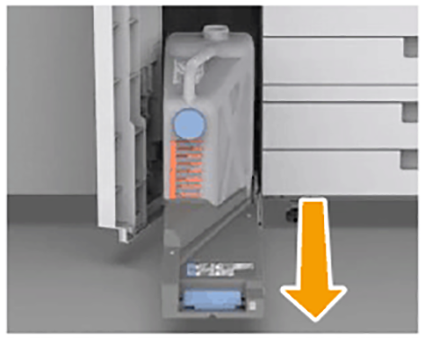 .You can replace the waste toner container at a later moment, but be aware that the active job or one of the next jobs will cause an error because of the full waste toner container. You find the waste toner container in the print module.