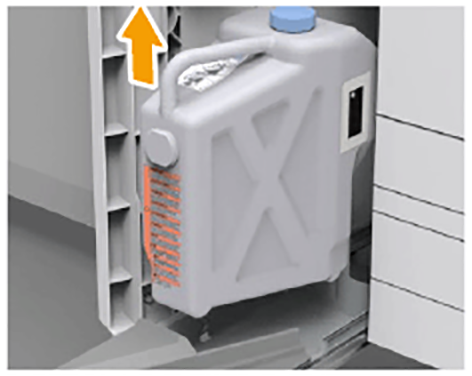 Lift the waste toner container to remove the container. Keep the waste toner container upright to prevent toner spilling. |