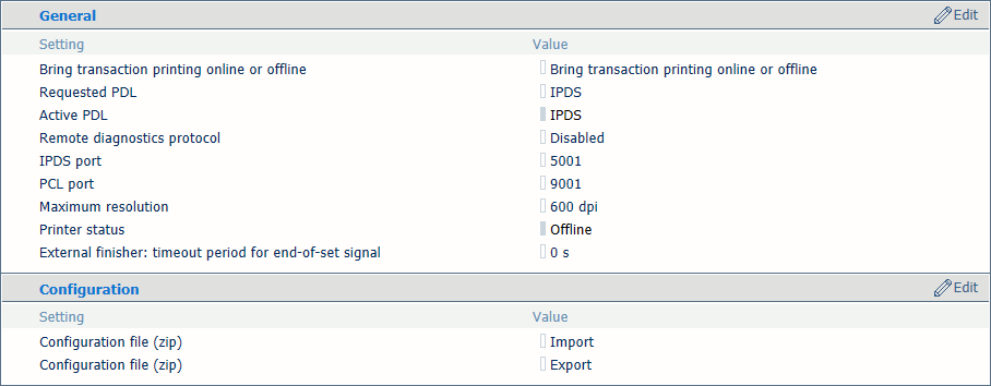 Quando o modo de impressão de transação estiver ativo, o fluxo de dados entra na impressora através de uma porta IPDS ou PCL separada. Nesta altura, todos os trabalhos de impressão de documentos entram na lista de trabalhos em espera. A impressora começa a processar estes trabalhos após sair do modo de impressão de transação e voltar ao modo de impressão de documento.