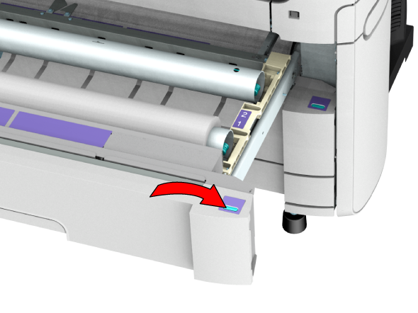To spare your back, it is advised to load an A0 or E-size media roll on position 1 and an A2 or C-size media roll on position 2.