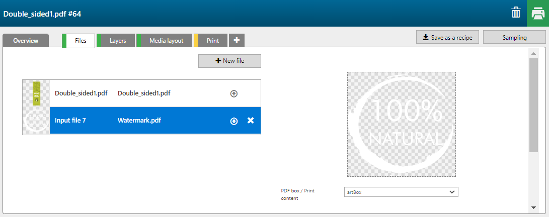 Vous pouvez affecter des pages, des calques ou des tons directs, présents dans le(s) fichier(s) d'entrée, comme données d'entrée d'un calque d'impression.