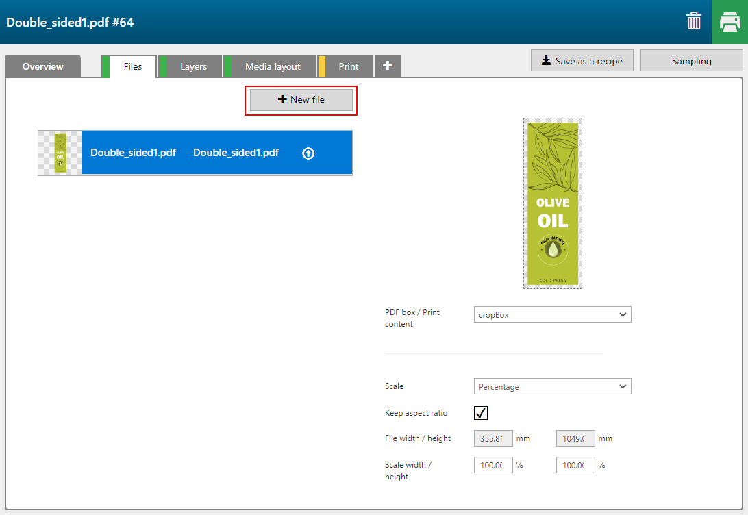 Fare clic sul pulsante [Nuovo file] per aggiungere un file all'applicazione.