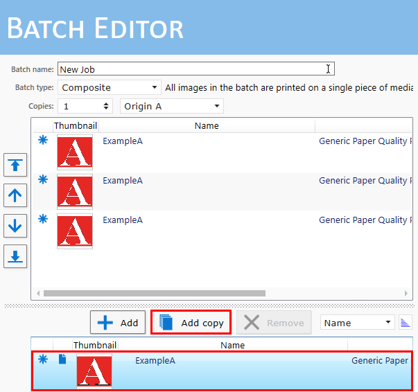 Tässä skenaariossa tulostamme useita kopioita samasta työstä, kukin omalle medialle. Käyttäjä haluaa saada saman kuvan ja median välisen aseman kaikille kopioille.