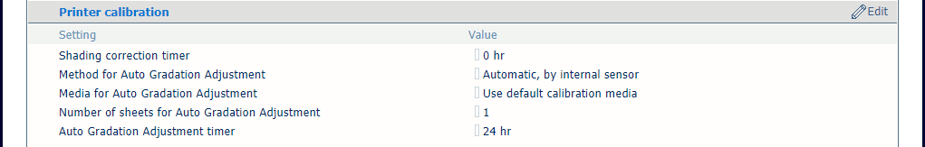 Voit määrittää tulostimen kalibroinnin oletusasetukset.