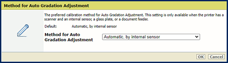 Määritä [Automaattisen harmaasävyjen toiston säätömenetelmä] ‑asetuksella haluamasi kalibrointitapa automaattista liukuvärien säätöä varten.
