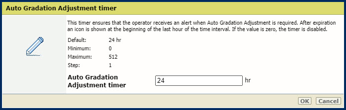 Section [Calibrage imprim.] Utilisez le paramètre [Temporisateur du réglage automatique de la gradation] pour définir l’intervalle de temps requis entre les procédures. Il est recommandé de définir un intervalle de temps afin d’obtenir un rappel pour effectuer le réglage automatique de la gradation chaque jour.