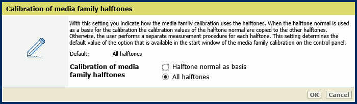Section [Calibrage de la famille de supports] Utilisez le paramètre [Calibrage de demi-tons de la famille de supports] pour indiquer la façon dont le calibrage de la famille de supports utilise les demi-tons.