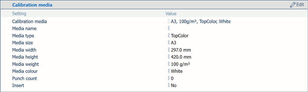 Section [Support d’étalonnage par défaut] Utilisez le paramètre [Support d’étalonnage par défaut] pour sélectionner le support pour le calibrage de l’imprimante.