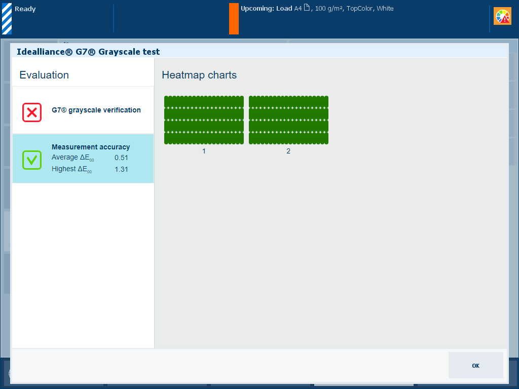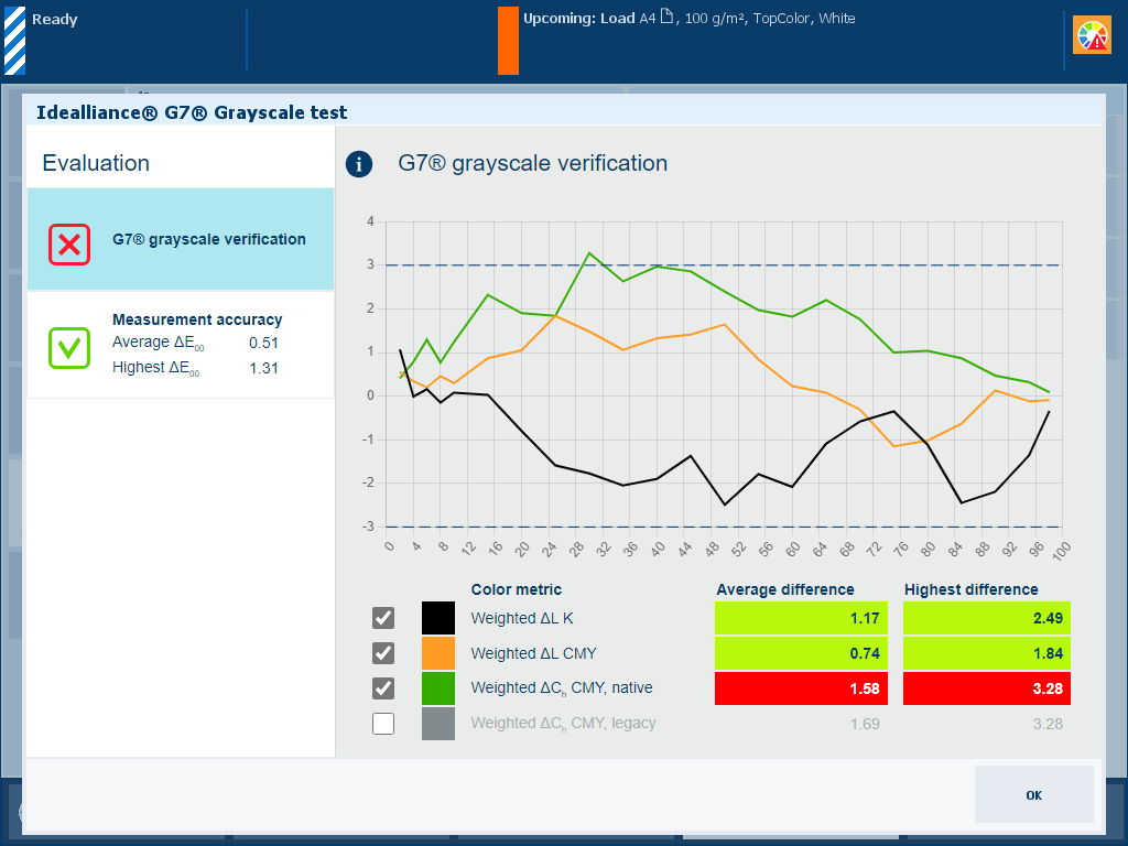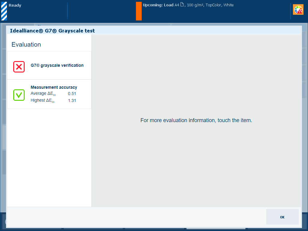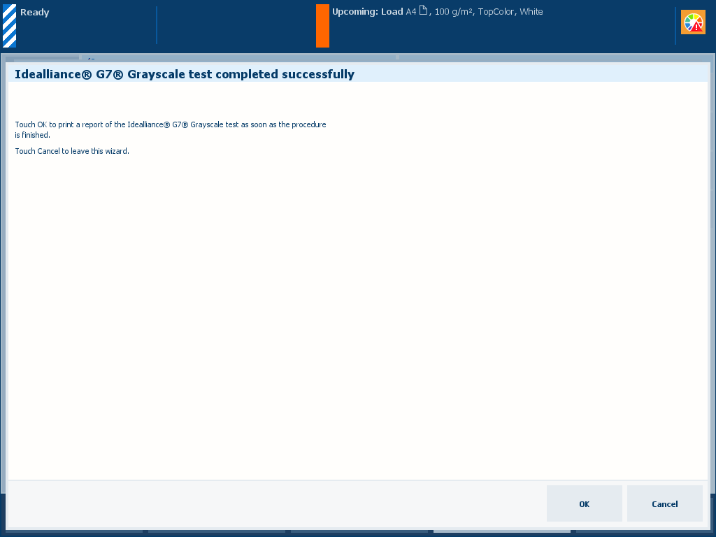 When you want to print a detailed report of the performed G7® Grayscale test, touch [OK].