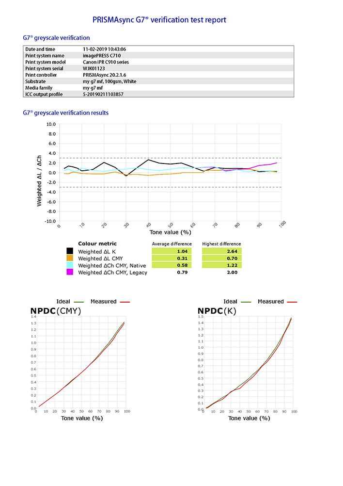 With PRISMAsync Print Server, you can verify if the printed output meets the G7® Grayscale target.