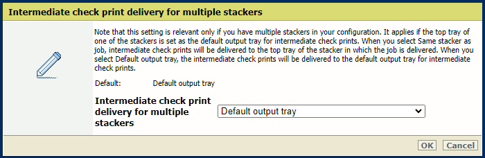 この設定は、中間チェック印刷のデフォルト出力先として、いずれかのスタッカーのトップトレイが設定されている場合に適用されます。