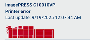 An error has occurred in the printer and caused a job to stop. For information on the error, check the [Events] screen. |