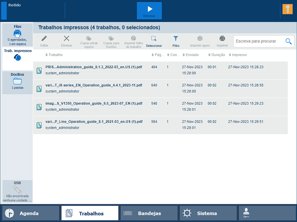 Copiar o trabalho impresso para DocBox ou para os trabalhos em esperaÉ possível copiar e mover os trabalhos impressos a partir da seguinte localização: