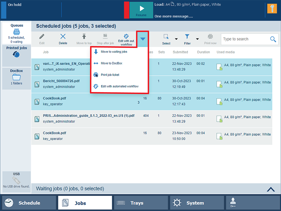 将等待作业移动到 DocBox您可以从以下位置将作业移动到 DocBox 文件夹: