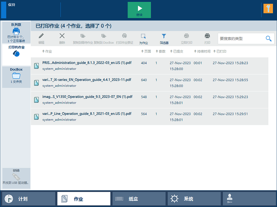 已打印作业 |