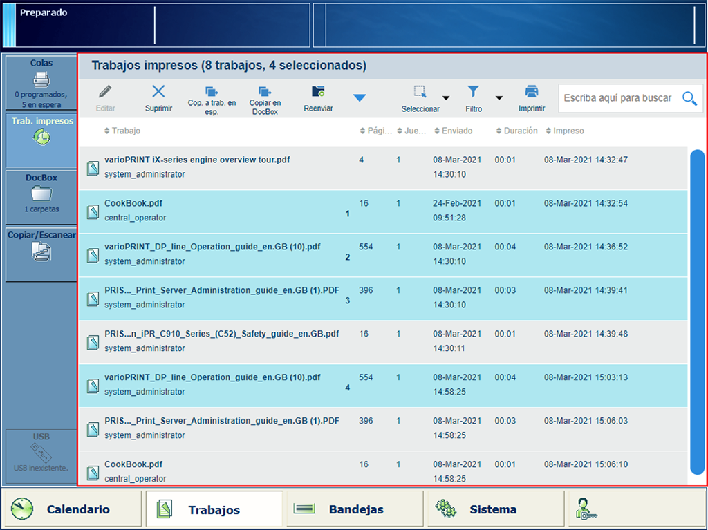 Mover los trabajos seleccionados a otra carpeta de DocBox.