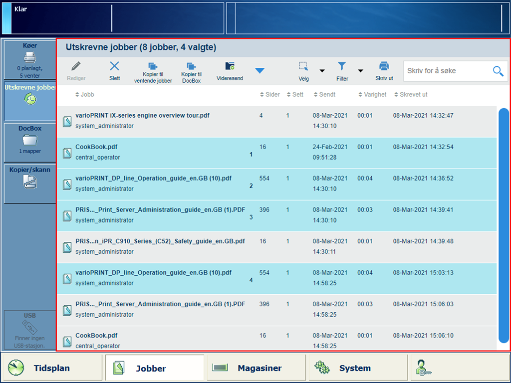 Utskrevne jobber |