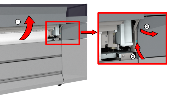 Zásuvku pro údržbu otevírejte jen, když se na ovládacím panelu zobrazí zpráva s povolením otevření zásuvky.