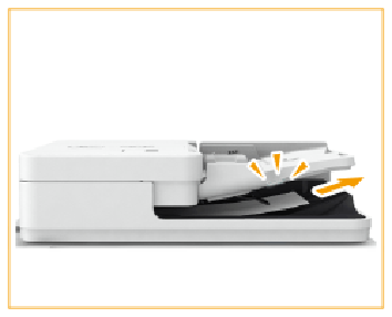 Skanując długie oryginały (432 mm - 630 mm, 17 inch - 24.8 inch), należy odciągnąć przedłużenie tacy na oryginały i podawać je ręcznie, aby zapobiec ich marszczeniu się.