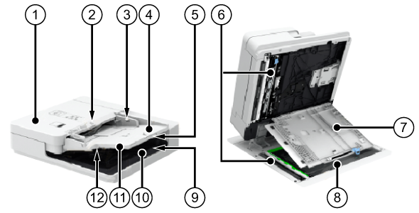 Automatyczny podajnik dokumentów umożliwia kopiowanie lub skanowanie zestawu oryginałów. Automatyczny podajnik dokumentów skanuje obie strony oryginałów jednocześnie.