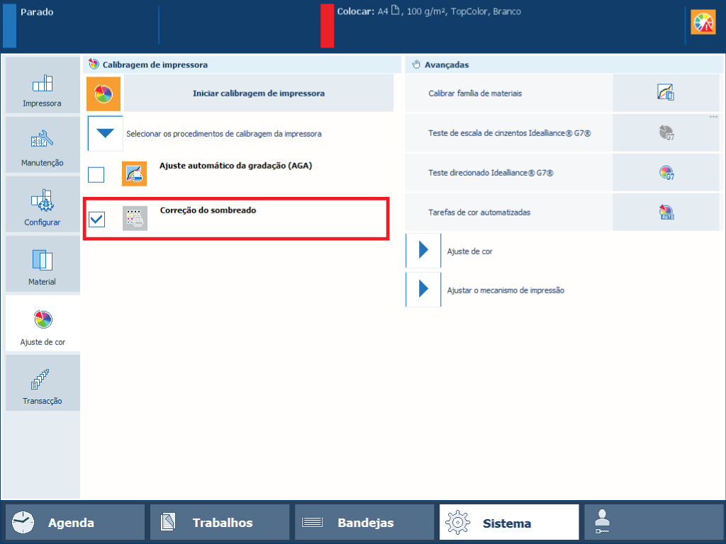 Toque em [Iniciar calibragem de impressora].