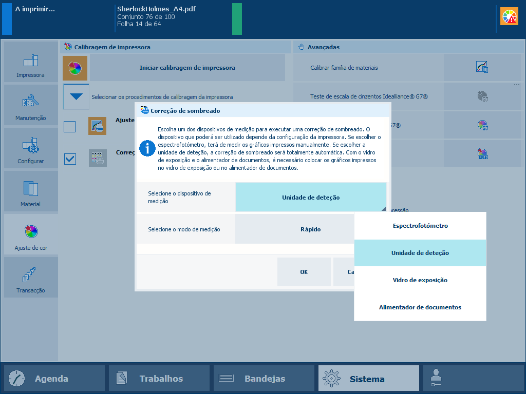 o procedimento de correção do sombreado com a unidade de deteção demora dois minutos.