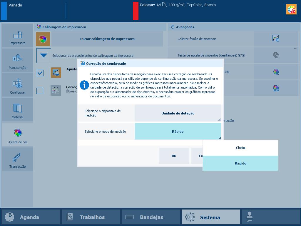 Dispositivo de medição de correção de sombreadoSelecione o modo de medição: rápido ou completo.