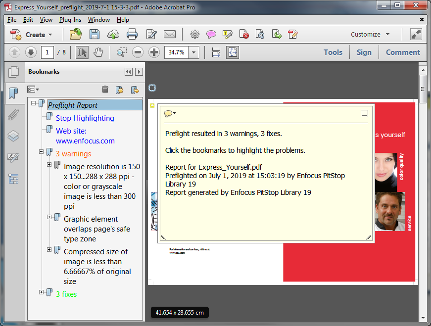 Save the preflight report as a PDF file and open it.