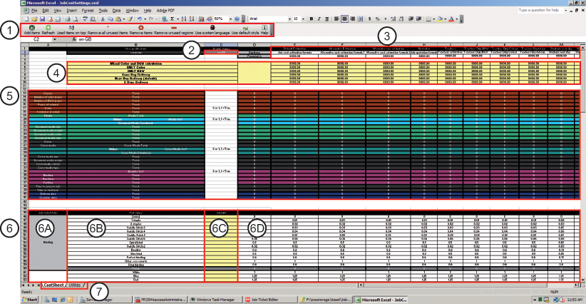 [Beløp:] Antallet – eller verdien – som er angitt av kunden for hvert jobbkortelement. Kunden har for eksempel valgt verdien [23 hull] for jobbkortelementet [Hullstansing]. [Beløp:] -kolonnen mottar verdiene direkte fra jobbkortementene til de innsendte jobbkortene. Kolonnen [Beløp:] er kolonne C i regnearket CostSheet. |