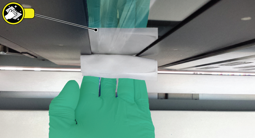 Ant UV LED bloko langelių gali kauptis dulkės ir kiti nešvarumai bei rašalo rūkas. Po kiekvienu dvigubu UV LED bloku yra kvarcinis langelis.