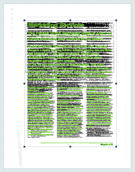 In the [Clean-up] dialogue, select [All] for option [Pages] and click [Apply]. In the preview, everything outside the guidelines is erased.