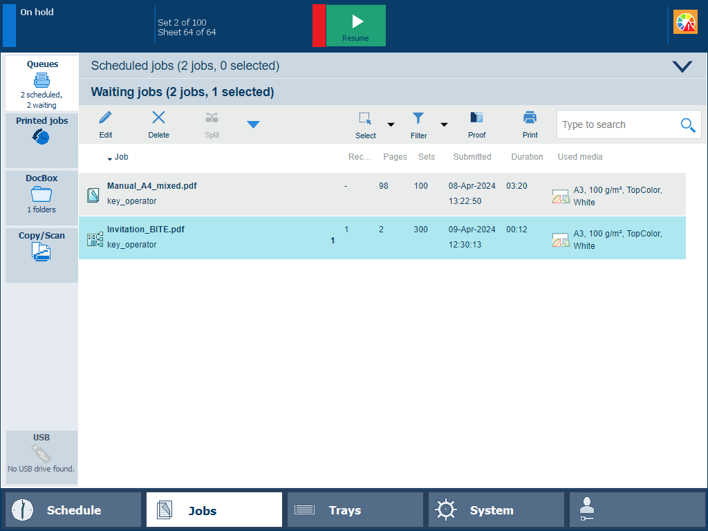 When the PDF/VT job arrives in the print queue, you can do the following: