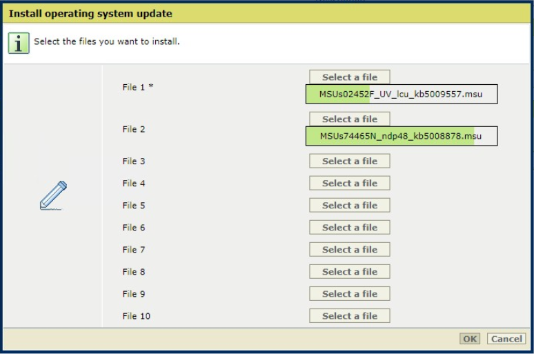 Нажмите [Select a file] (Выбрать файл) для перехода к обновлениям операционной системы, которые необходимо установить.