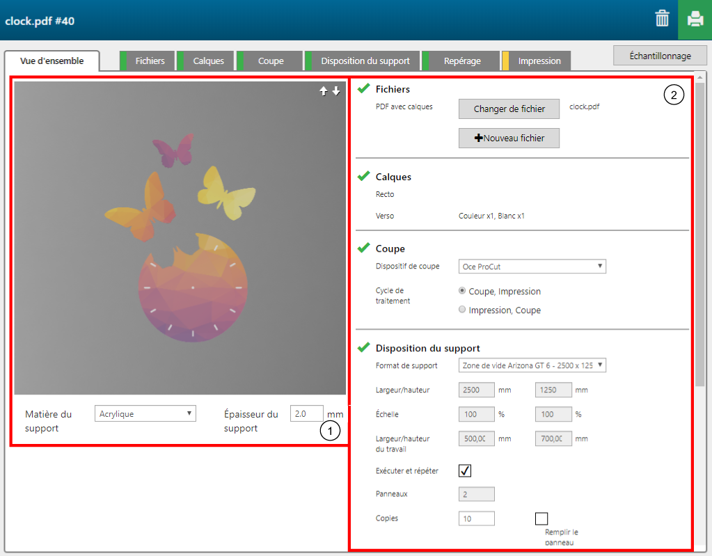 La section de droite présente un résumé des paramètres de votre application. Il est possible de modifier un nombre limité de paramètres dans cette section. Pour accéder aux paramètres plus en détail, ouvrez l'onglet correspondant.